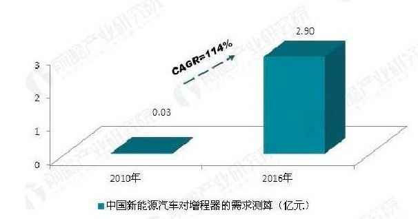 国内: 综合考虑我国新能源汽车对增程器的需求及增程器市场价格等因素,对增程器的需求规模进行测算,2016年我国新能源汽车对增程器的规模在2.90亿元左右,2010-2016年需求规模保持约114%的年均复合增速。